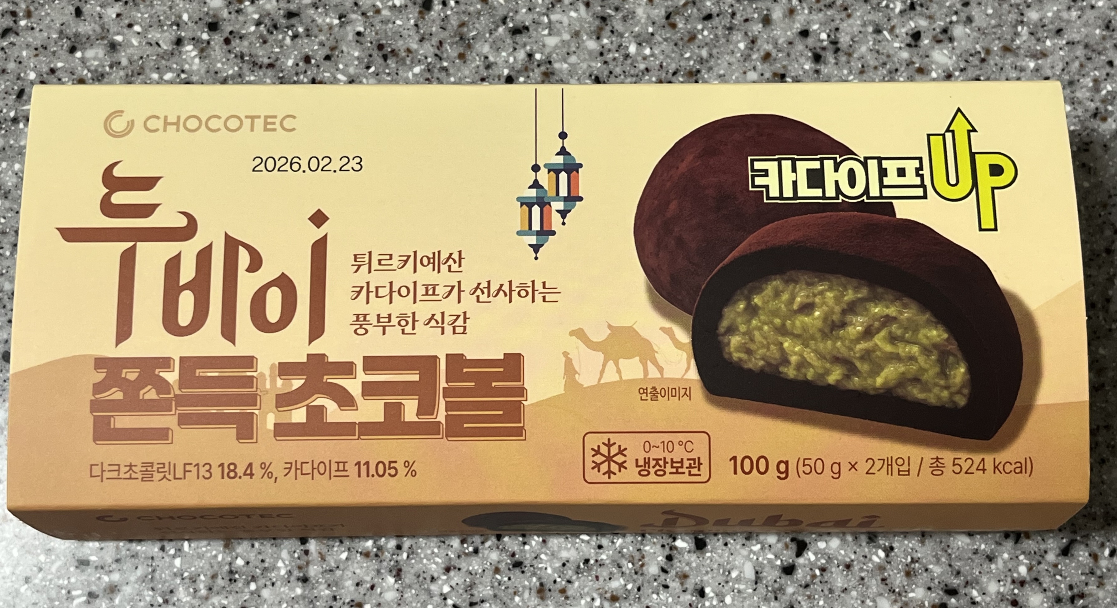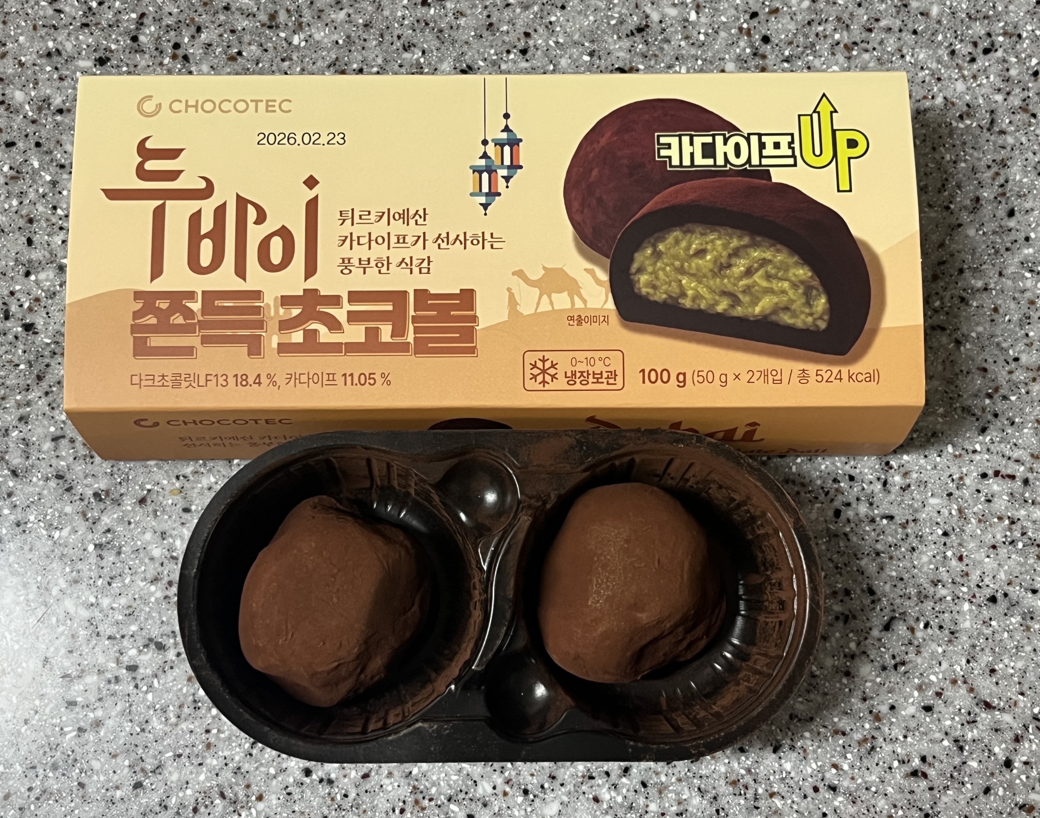 카다이프 7.81%, 다크초콜릿 23.05%, 피스타치오 0.05%로 되어 있습니다~