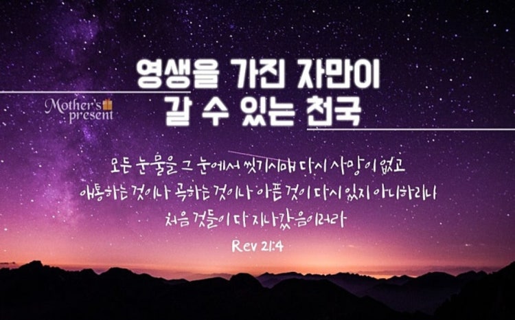 왜 하나님께서 영생을 주려고 하셨을까? 바로 우리를 천국에 데려가기 위함 입니다. 그렇다면 천국은 어떤곳일까요?